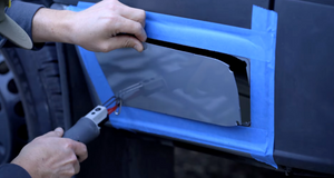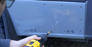 Once the line has been drawing you'll want to drill close to each of the four corners to give you space to insert your Airsaw or Jigsaw blade. It can also help if you apply painters tape around the outside of the cutline to protect the paint. It will be covered with the trim ring, but it's still good practice to keep the paint intact whenever possible. If you do scruff or scratch the paint be sure to apply a rust preventative paint over those areas prior to installing the trim ring.