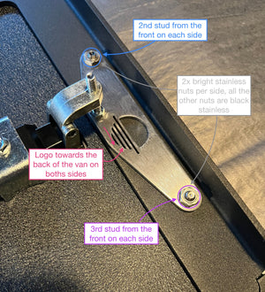 We added these strike plates to the kit in mid-March 2026. These help with 2 things: First they give a better wear surface for long term latching (this was not a reported problem at all with older kits we are just always looking to improve and make this a life-time-of-the-van product). Second and the most important reason is to make adjusting the compression latch easiser & in the right space with plenty of clearance when opening the door. The strik plate goes on the 3rd and second bolt from from front of the van on the very inside and is attached with the stainless colored